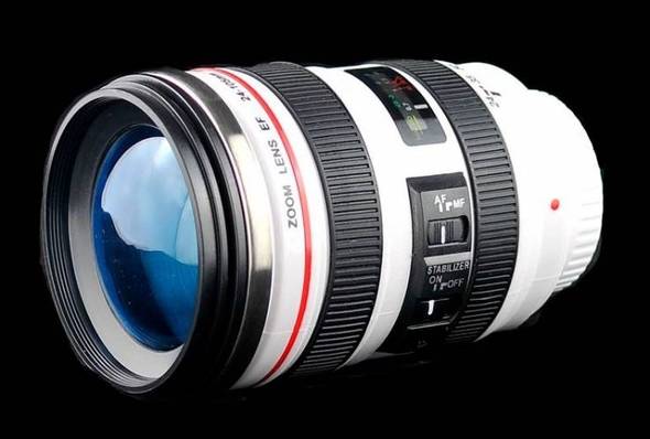 Termo con forma de lente profesional de la cámara, ideal para los amantes de los niños y de las bebidas calientes.